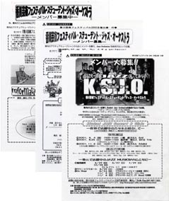 香川芸術フェスティバルJAZZ部門から生まれたK.S.J.O.は「JAZZを勉強したい人は全て生徒(学生)である」との考えのもと”JAZZを志す者”が一般公募により集められ、結成されたオーケストラである。JAZZという芸術文化を体験し、幅広い人間性を培うことを目標にしている。社会人ジャズ・オーケストラSwingin' Wonderland JAZZ Orchestra(S.W.J.O.)による年間6回の指導とともに、プロミュージシャンを招き年間5回のコンサート兼ジャズ・クリニックを行っている。 1)【香川芸術フェスティバルジャズ部門からの自立】 今年度から活動母体は、NPO法人「SWJOエンタープライズ」 となります。 2)【広く一般への公募を行う】 通年募集とします。募集は「香川芸術フェスティバルジャズ部門」 の2大主旨のもと、 NPO法人「SWJOエンタープライズ」か らの募集となります。 長期計画でやりたい曲が演奏できるバンドを作りましょう〜! NPO法人「SWJOエンタープライズ」事務局 関元 TEL/FAX 087-866-7377(S.W.J.O.事務局内)